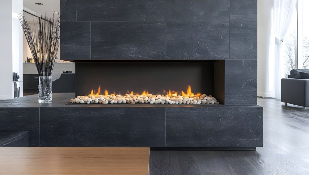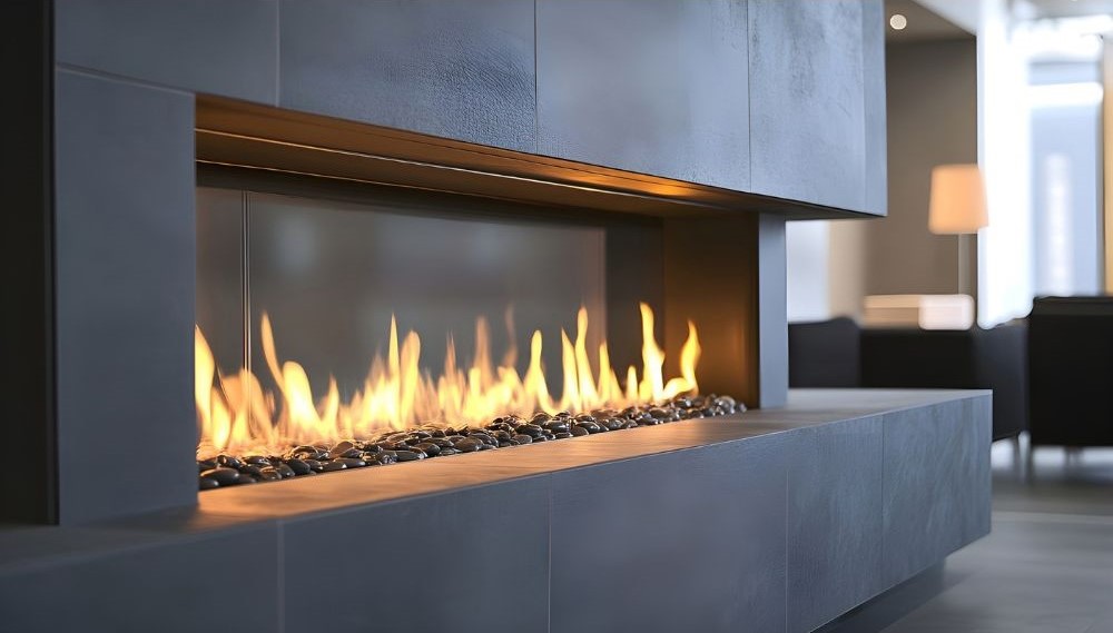 - Llama realista y diseño elegante – las chimeneas de gas modernas cuentan con troncos cerámicos o piedras decorativas que crean la apariencia de una llama natural.