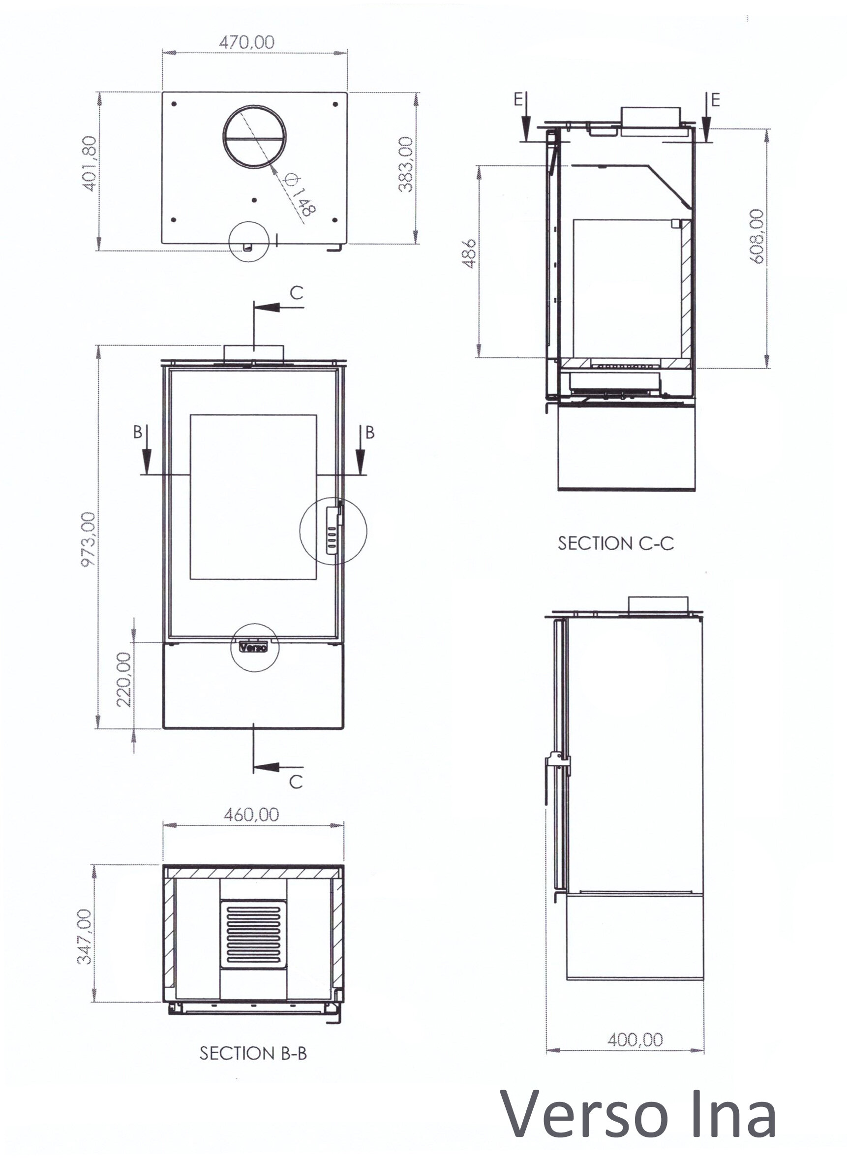 Estufa de leña Verso Ina, 7.5kW