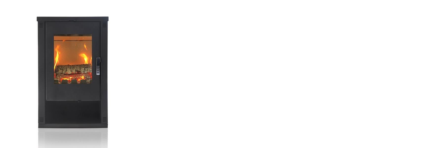 Estufa de leña de tamaño compacto y diseño sencillo.